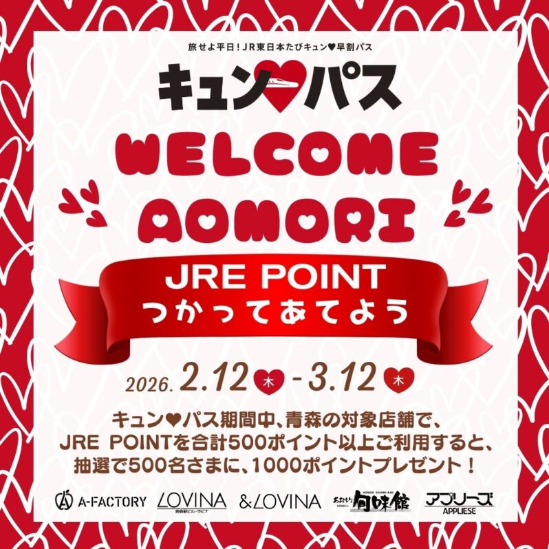 キュン♥パス【♥WELCOME AOMORI♥】JRE POINT つかってあてようキャンペーン(2/12ー3/12)