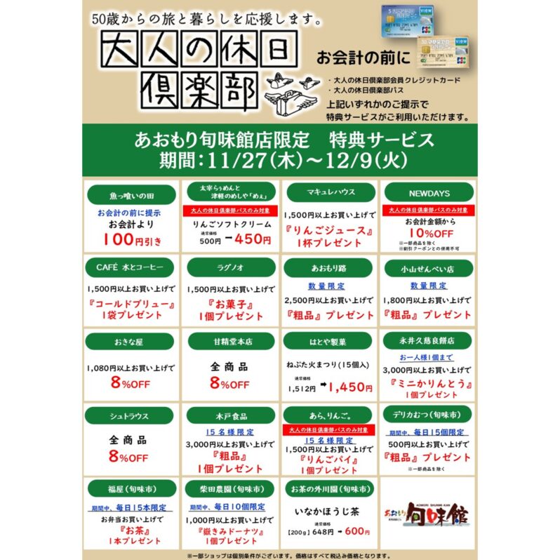 大人の休日倶楽部パス特典サービス【11/27~12/9】